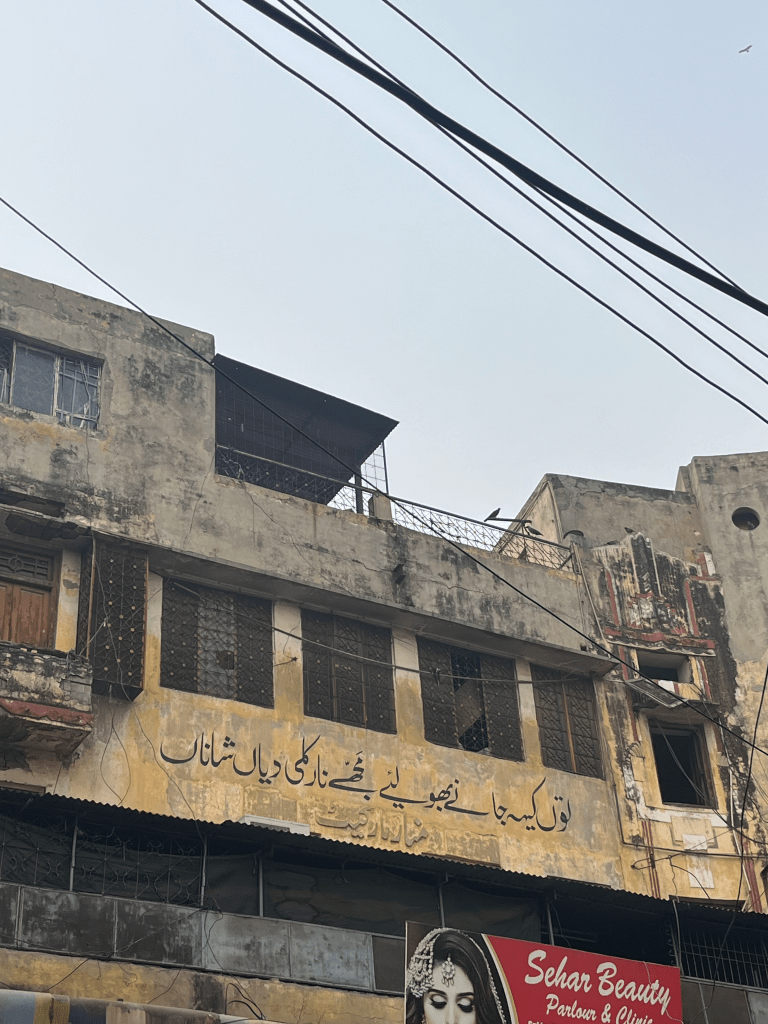 Anarkali was my grandmother’s childhood home. “toon ki jaane bholiye majhe naarkali diyaan shaanan” reads the beginning verses of Anwar Masood’s Punjabi poem, inscribed on the walls overlooking the entrance to Bano Bazaar.